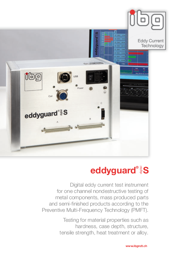 The eddyguard S distinguishes itself with its compact design and concentration on one- channel structure applications with one coil at one part location combining that with the well-known ibg test reliability and ease of operation. Configuration is done by an external PC via a USB port. The ergonomic interface of the ibg PC software facilitates intuitive and simple operation. After the configuration is finished the eddyguard may be disconnected from the PC/laptop and continues testing self-sufficiently.